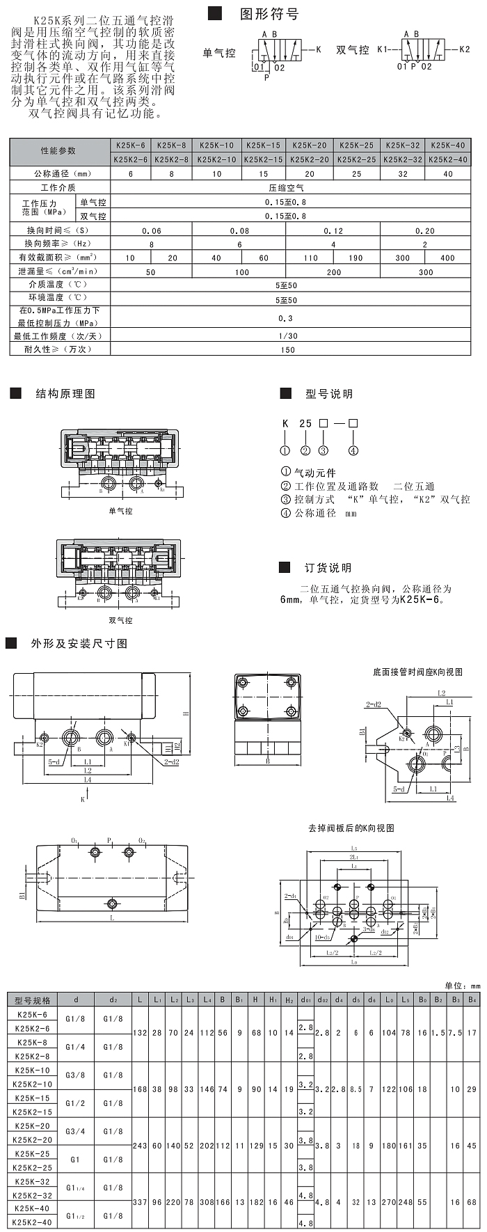 K25K系列二位五通气控换向阀