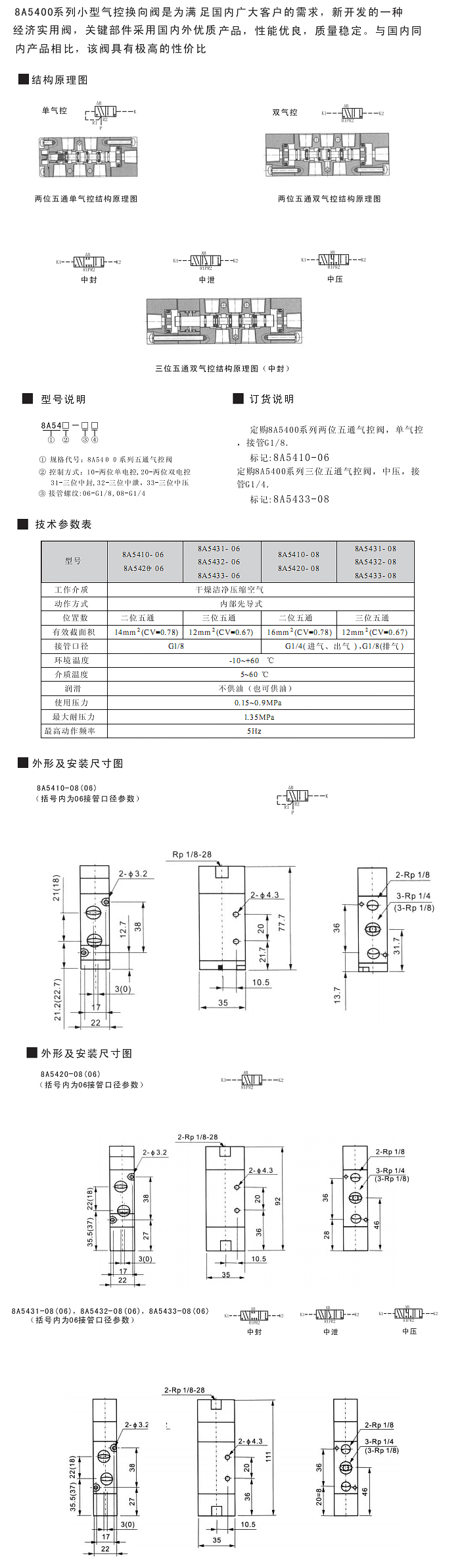 8A5400系列二/三位五通气控换向阀